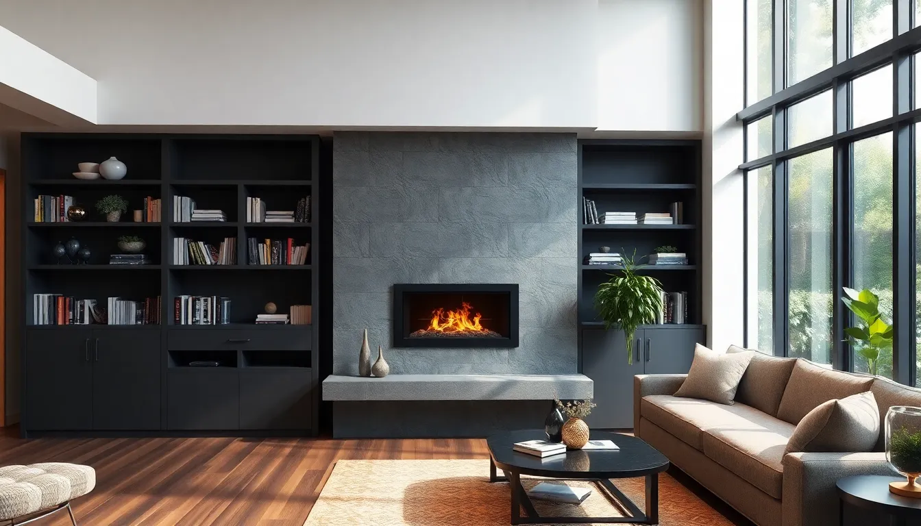 Built-in shelving creates storage solutions while adding style. This design maximizes vertical space, making rooms feel organized. Custom configurations fit personal needs, accommodating books, decor, or plants. Incorporating adjustable shelves provides flexibility, allowing easy rearrangement. Materials vary, offering options like wood, metal, or glass finishes. For example, a living room can feature built-in shelves flanking a fireplace, providing storage and visual interest.